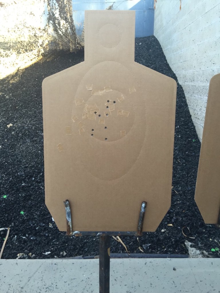 Target: 8-inch circle with a 3×5 vertical box in it, FPS-1 body, or Handgun Combatives Chest Cavity Target. The 3×5 box is the primary scoring zone.
